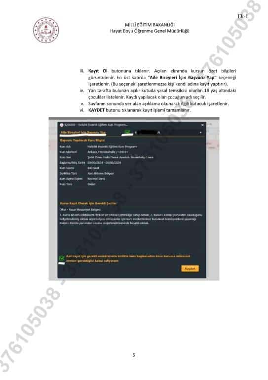iii. Kayıt Ol butonuna tıklanır. Açılan ekranda kursun özet bilgileri görüntülenir. En üst satırda “Aile Bireyleri İçin Başvuru Yap” seçeneği işaretlenir. (Bu seçenek işaretlenmezse kişi kendi adına kayıt yaptırır).