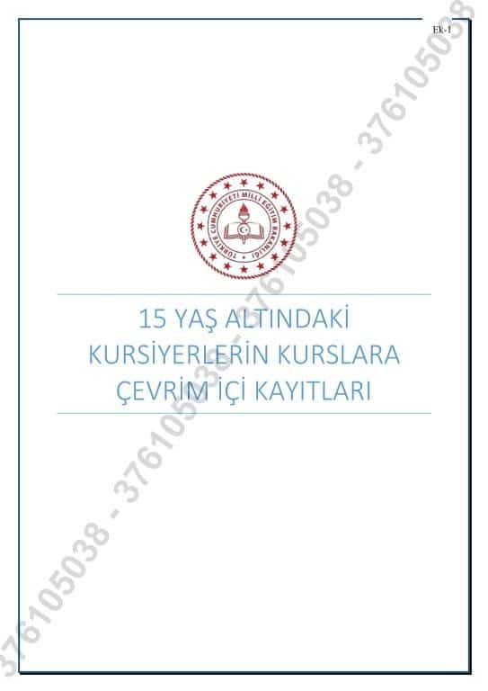 15 YAŞ ALTINDAKİ KURSİYERLERİN KURSLARA ÇEVRİM İÇİ KAYITLARI